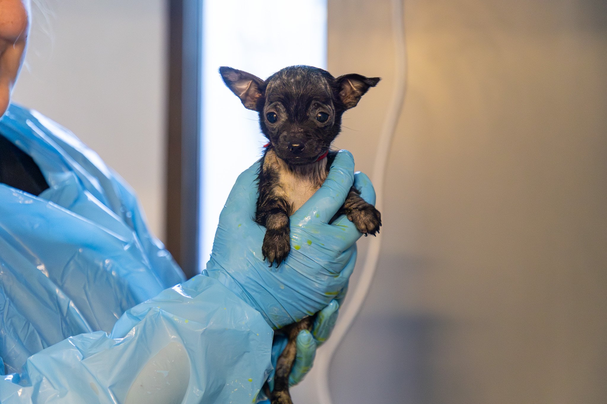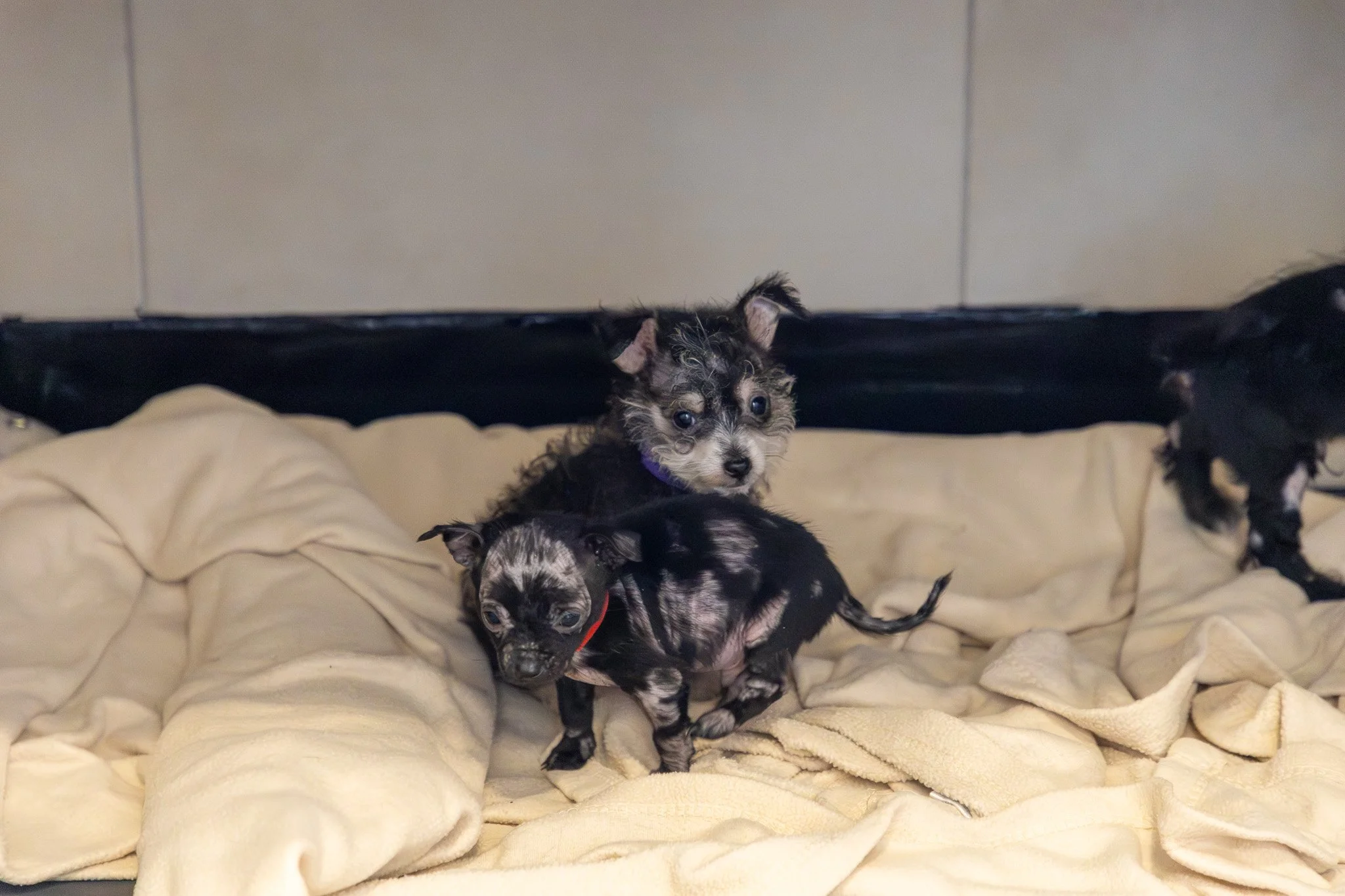 From the moment they arrived, our team began that process. Medical staff started treatment right away, while animal care staff prepared clean, separate spaces to prevent the spread. At the same time, our behavior team helped ensure each puppy remained engaged and comforted, even while apart, and our foster team prepared for the next stage of their care.